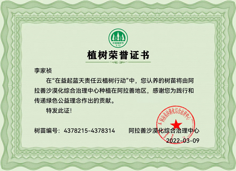 天平生物线上云植树为戈壁添绿